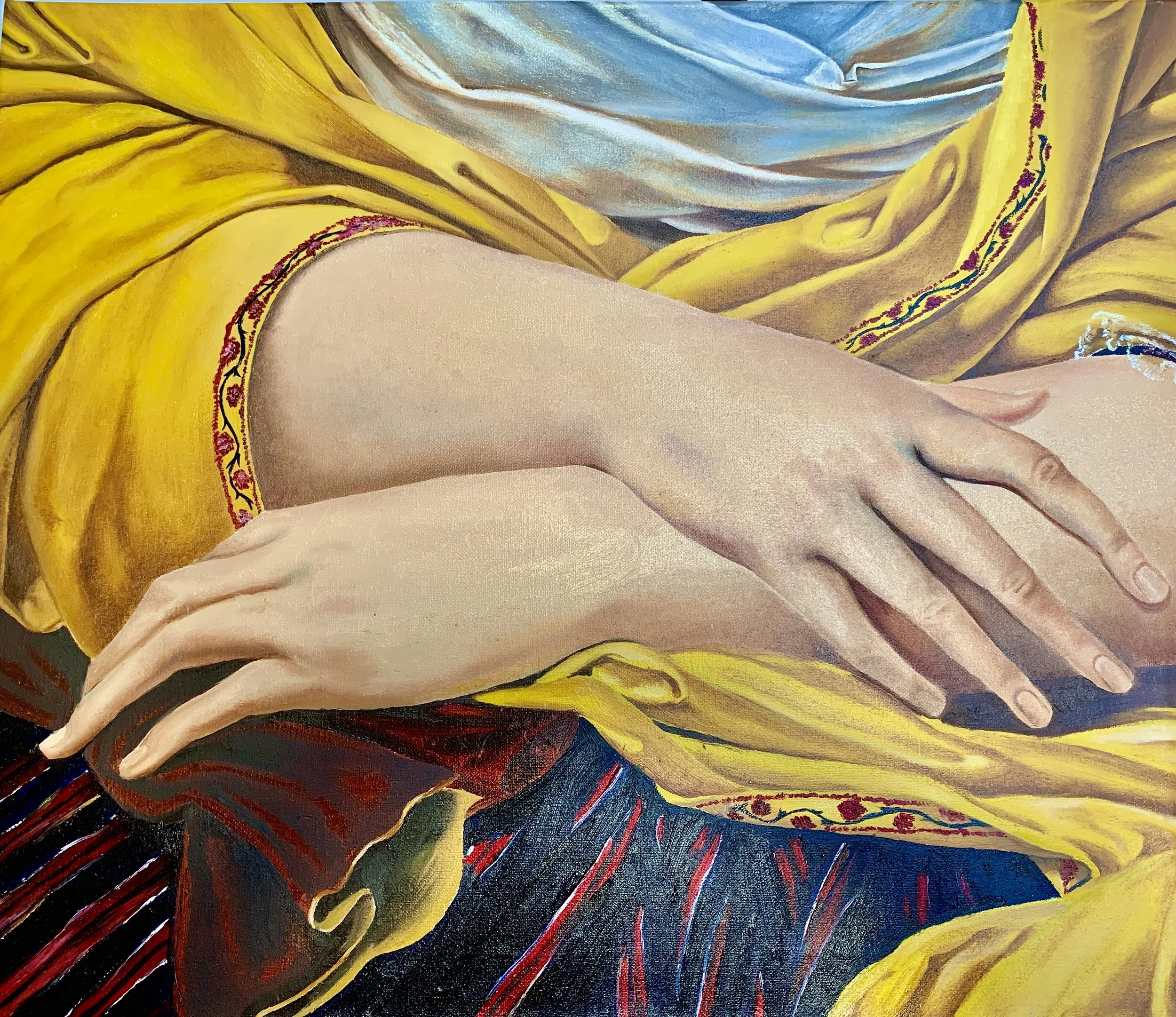 This painting is a zoomed in rendering of the Portrait of Princess Louise of Stolberg, Countess of Albany, by François - Xavier Fabre from the Uffizi Gallery in Florence, Italy.